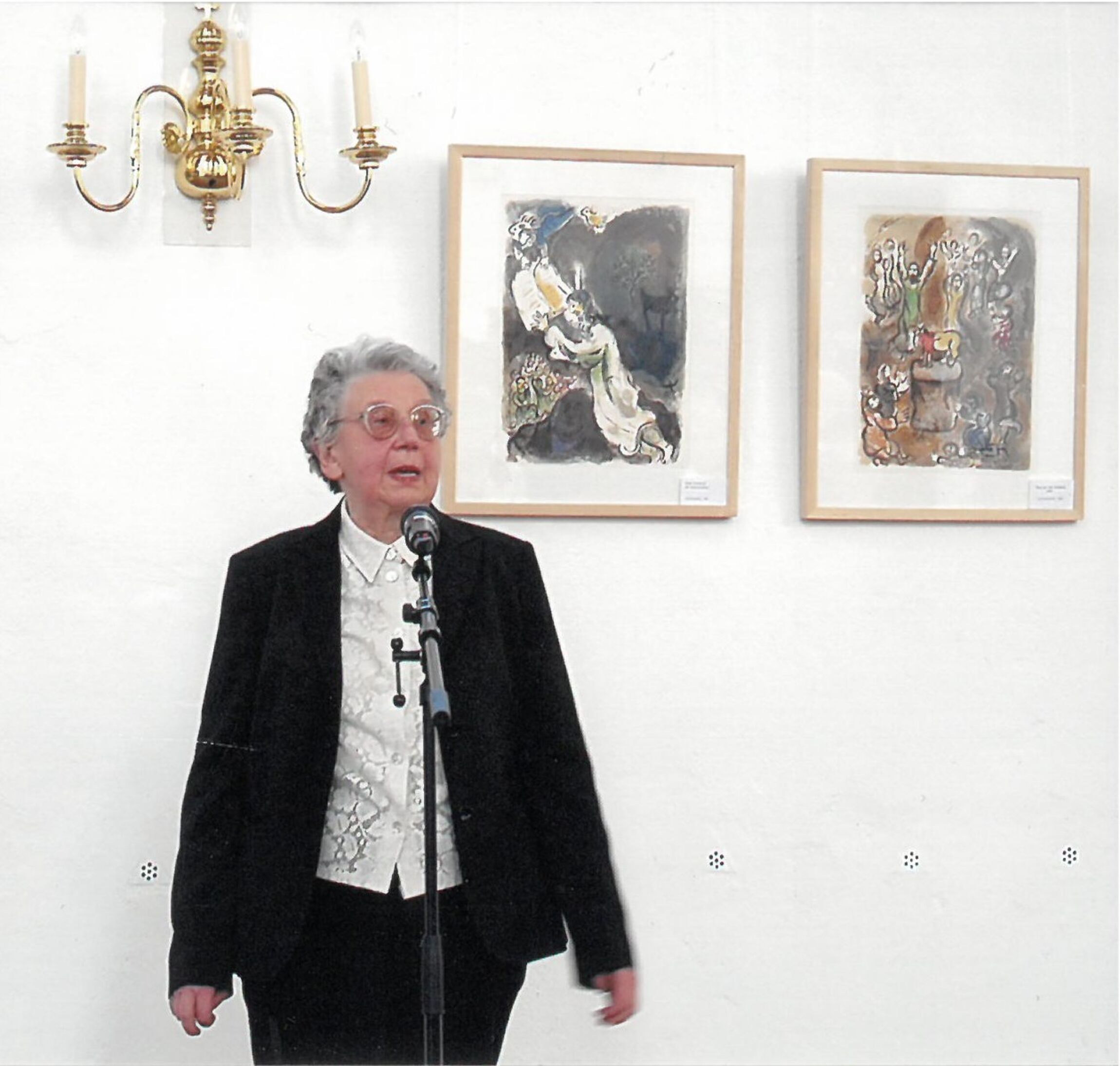 Neben der Musik beschäftigte sie sich über Jahre mit dem Werk von Marc Chagall (1887-1985). Frau Kraemer erwarb im Laufe der Zeit ab ca. 1985 immer wieder Grafiken (Lithografien und Radierungen) von Chagall, so dass ihre Sammlung auf 90 Stück anwuchs. Kernbestand bilden die farbintensiven Chagall-Lithografien aus dem Exodus-Zyklus (entstanden 1966) sowie weitere Bibelillustrationen und zwar Radierungen aus dem Zyklus „Bible“ (1931-39 und 1952-56) und Farblithografien aus „La bible“ von 1956 und aus dem Zyklus „Dessins pour la bible“ (1960 entstanden).